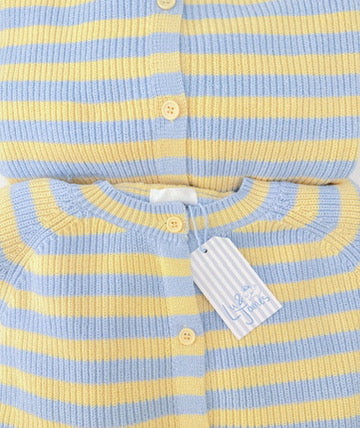 Where's Waldo just got a new cardigan! This bright and fun sweater is the perfect piece for the colder months. With butter-yellow horizontal stripes, this cardigan is a great way to bring color into your wardrobe!